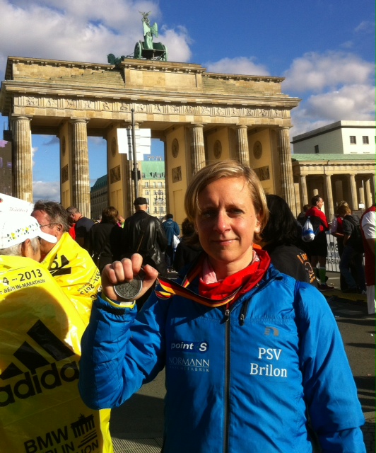 Anja im Ziel beim Berlin Marathon